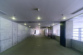 空間構成: 建物の中には、光と影が生み出す美しいコントラストがあり、まるで彫刻のような空間が広がります。もともとは、ある企業のためだけに設計されたもので、建築家のこだわりが随所に感じられます。